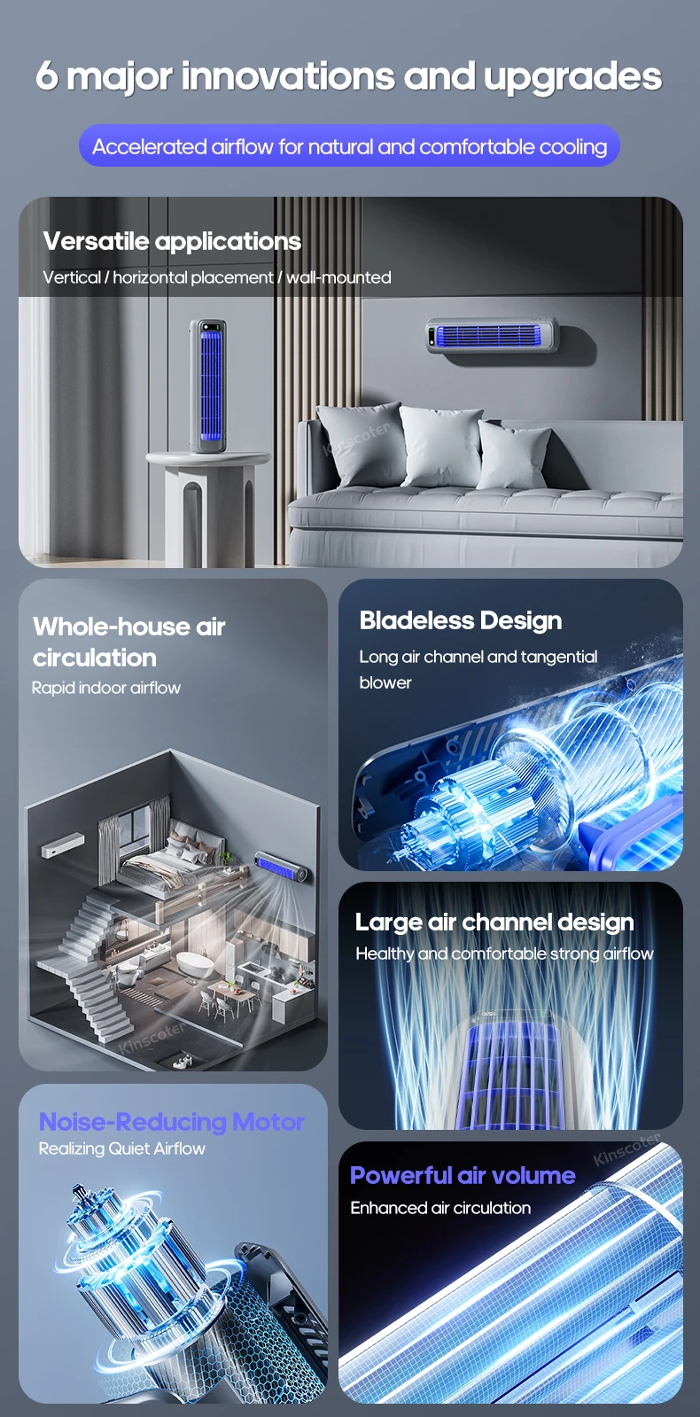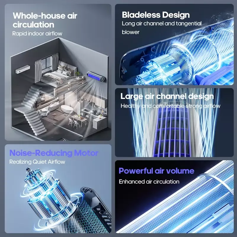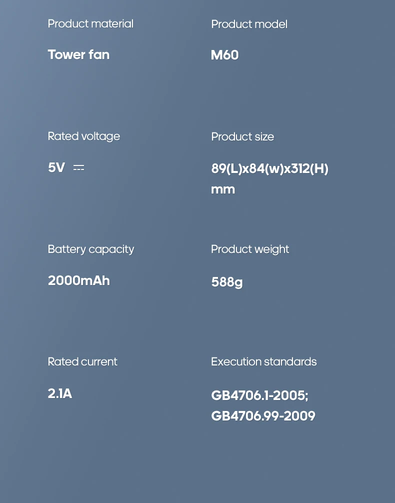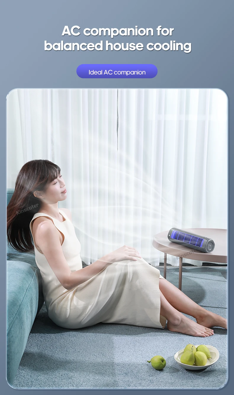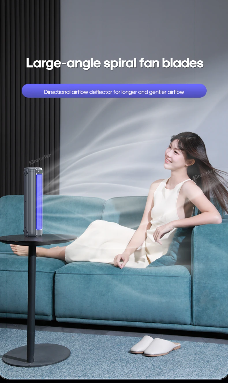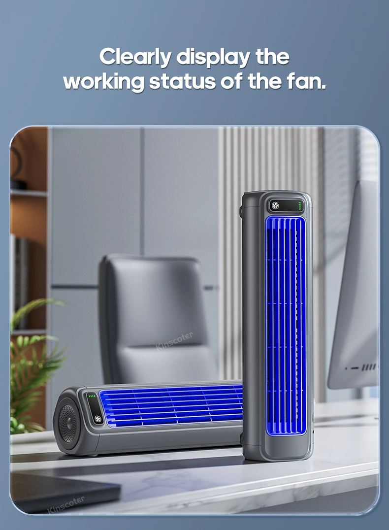 5.Compacto e Portátil: Perfeito para pequenas mesas de escritório, mesas de cabeceira ou qualquer espaço de trabalho limitado, este ventilador de torre é compacto e fácil de transportar.Seu design leve facilita o transporte, garantindo que você possa desfrutar do ar fresco onde quer que vá.