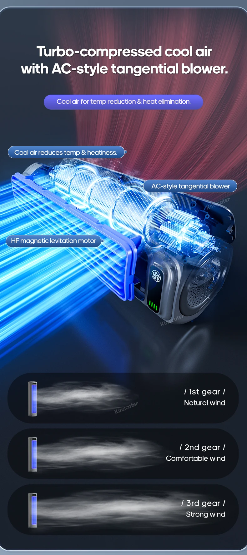 2.Configurações de velocidade ajustáveis: O ventilador de resfriamento oferece configurações de três velocidades, permitindo que você personalize o fluxo de ar de acordo com suas preferências e nível de conforto.Escolha entre configurações baixa, média ou alta para criar o ambiente de resfriamento perfeito.