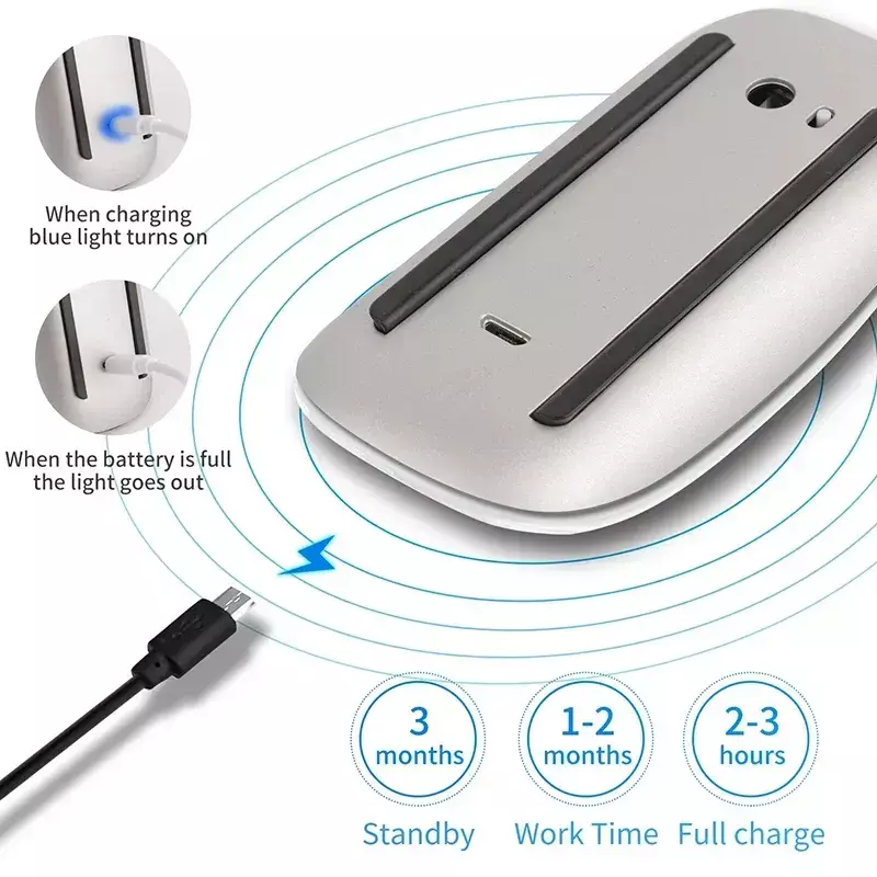 Mouse mágico sem fio bluetooth para computador, modo duplo, silencioso, recarregável, toque, fino, ergonômico, para apple macbook air Nota:Apenas dispositivos Bluetooth com versão 4.0 e superior são suportados. 1:Para Mac precisa atualizar o sistema para um sistema acima do OSX10.11; Configure um pouco de Bluetooth - espere que a busca toque no mouse - clique no link. 2:Para Mac suporta protocolos Bluetooth acima de 4.0. (clique em local-clique no relatório do sistema-clique em hardware-Bluetooth-Especificação principal do Bluetooth: 4.0 (0x6) para suporte. 3: dispositivos não suportados: versão 3.0 Bluetooth-Win7. 4: o produto é um mouse Bluetooth e não requer um receptor USB adicional. Função: [fino e ultrafino]: design fino e leve. O design leve é a primeira escolha para viagens. [botão mudo do mouse]: botão mudo do mouse de baixo decibéis, adequado para bibliotecas, salas de conferências, cafeterias e outras ocasiões. [conexão fácil]: a distância máxima de conexão pode ser de até 15 metros.Você só precisa emparelhar com o dispositivo ao usá-lo pela primeira vez e só precisa clicar no botão esquerdo ou direito do mouse pela segunda vez. [Dolling por toque] rolagem por toque bidirecional para obter uma navegação suave e intuitiva. Tecnologia sem fio: Bluetooth. Carregamento: tipo C. Distância sem fio: 10-15 metros. Tamanho do produto: 110-60-20mm. Peso: 54 ±5g. Número da chave: 2
